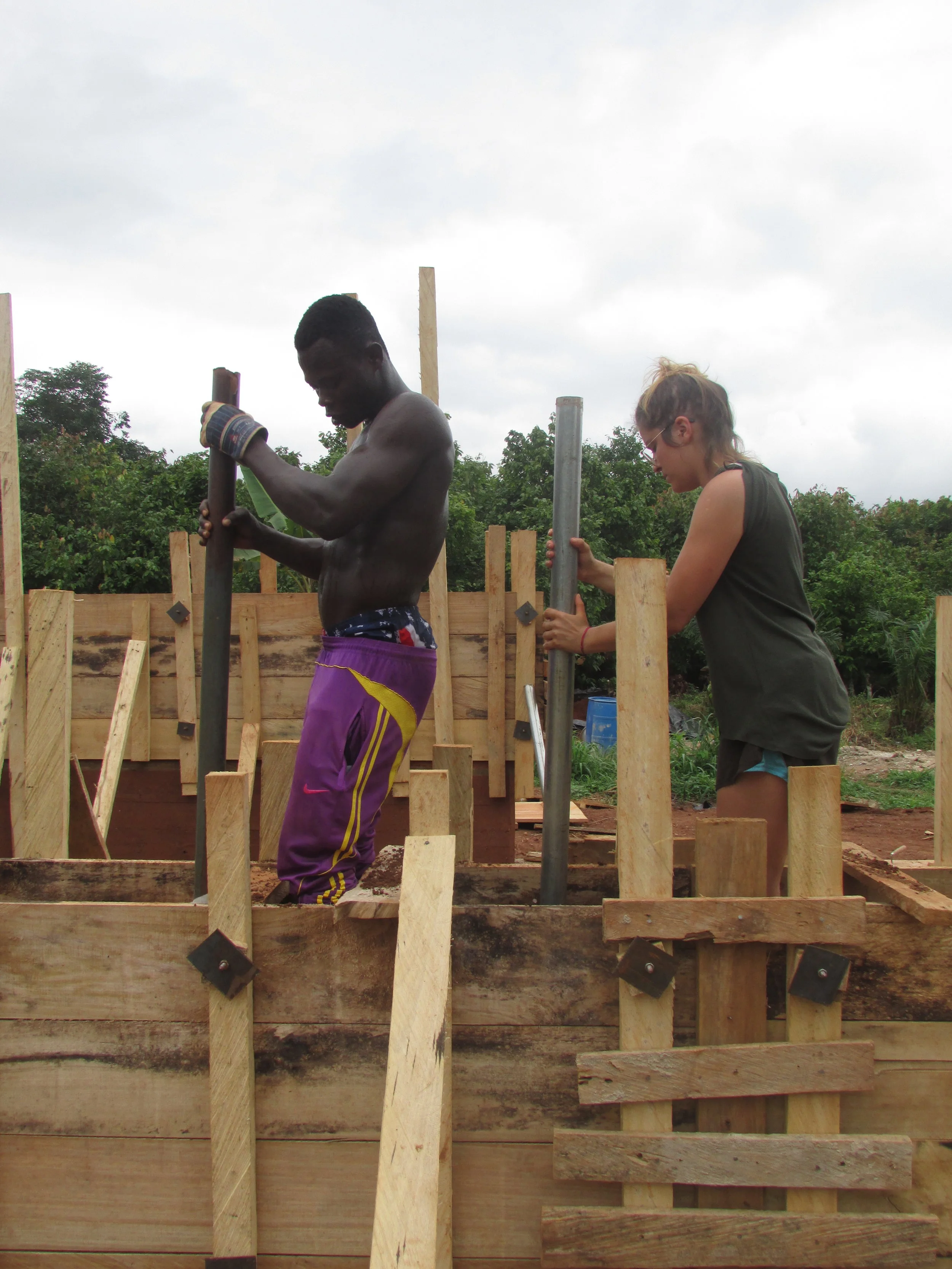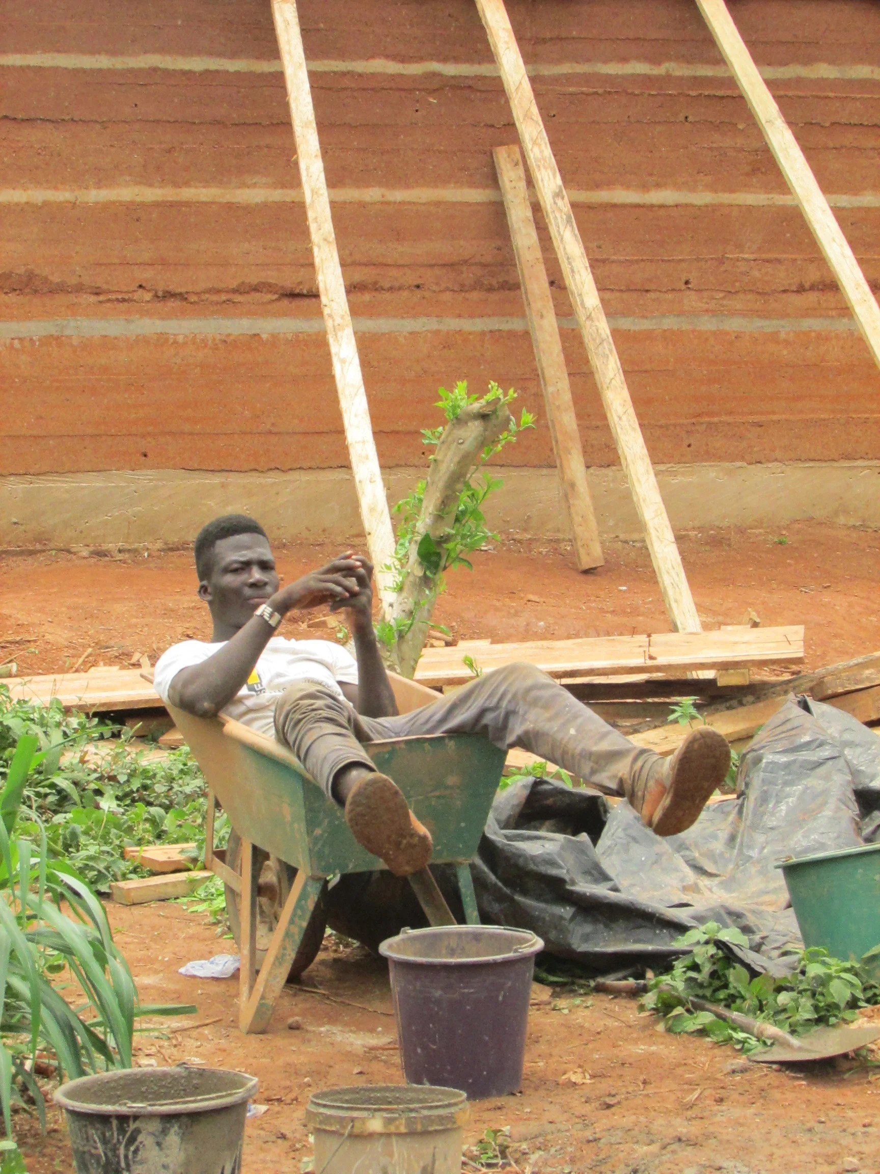 Celebration after the walls were finally done after 3 weeks of constantly moving wheel barrels of earth and ramming!